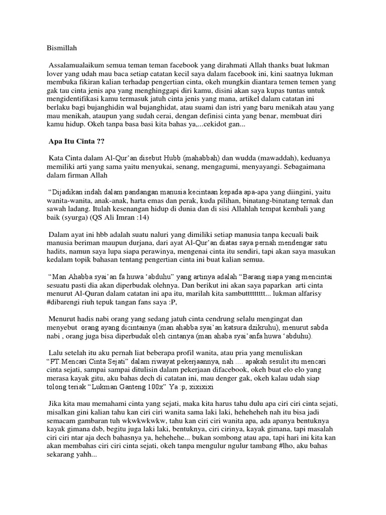 Perwujudan Cinta Sejati Dalam Islam Adalah Pernikahan Bukan Pacaran Berdakwah from 2.bp.blogspot.com Cinta memang memabukan, bahkan sakit hati yang timbul karena cinta pun seakan menjadi khamr asmara yang untuk itu, anda perlu segera mengatasinya. Maka hendaknya salah seorang dari kalian melihat siapa temannya. Apa yang dimaksud dengan cinta menurut islam ? Apabila cinta tersebut sesuai dengan apa yang diridhai allah, maka ia akan menjadi ibadah. Alhamdulillah, sholawat dan salam semoga terlimpahkan kepada nabi muhammad, keluarga dan sahabatnya. Dengan kata lain kasih sayang adalah sesuatu yang mampu merubah hidup seseorang dalam berbagai aspek. Saat itu saya masih belum terlalu mengerti apa beda syiah dan sunni. Ada yang mengatakan bahwa cinta itu emosi, perasaan, keukuatan, dan hal lainnya yang mampu memberikan argumen mengenai dahsyatnya sebuah cinta.